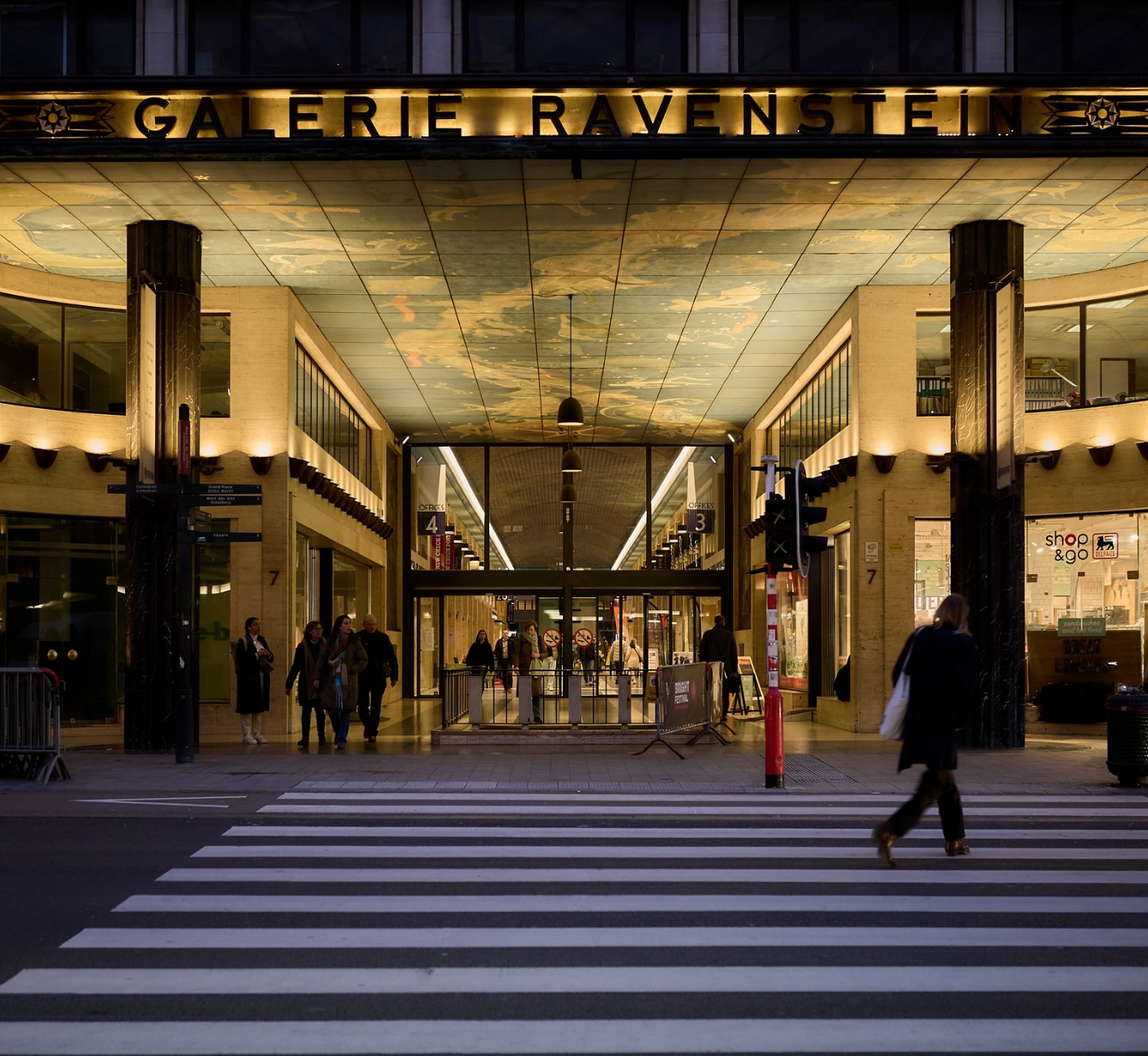 Maillon piétonnier important entre la ville haute et la ville basse, la Galerie Ravenstein est un patrimoine connu de tous les bruxellois qui accueille plus de 25 000 personnes par jour.